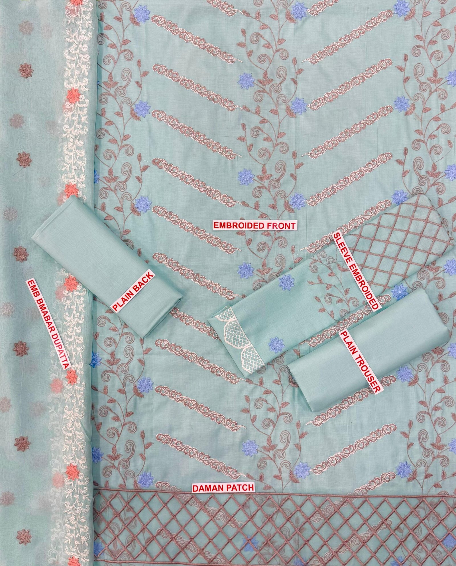 • Dupatta: Bamber Embroidered