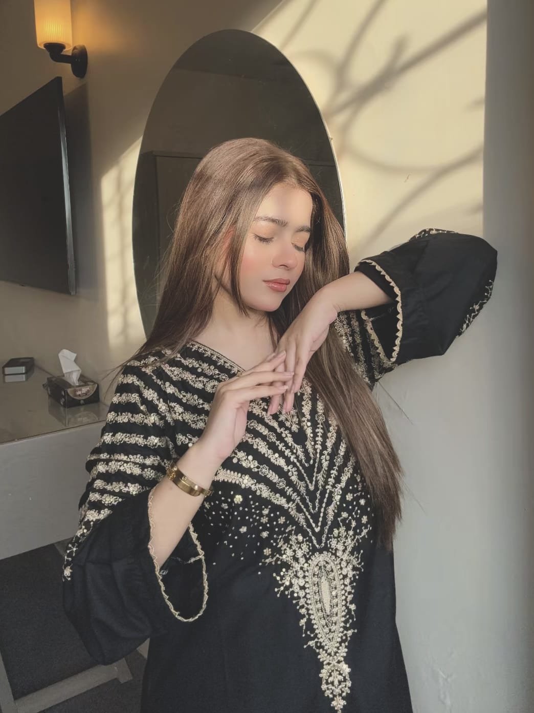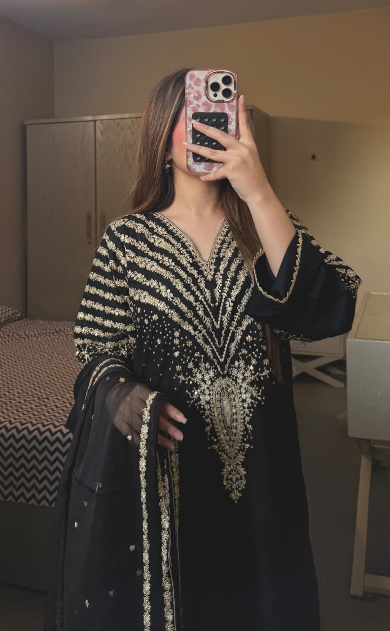 Apni festive look ko standout aur elegant banayein is stunning black embroidered 3PC ke sath 💖