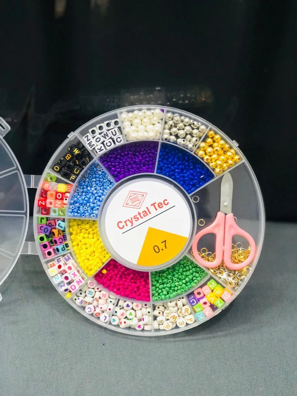 Ye DIY Jewellery Beads Box sirf ek craft kit nahi, balkay creativity ka complete world hai. Is mein seed beads, alphabet beads aur accessories sab kuch included hai jo aapko start se end tak complete experience deta hai.