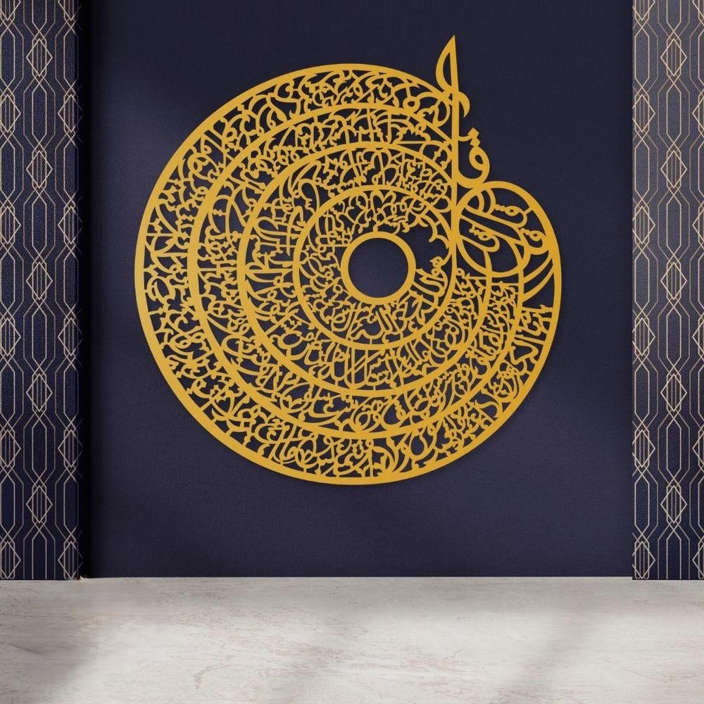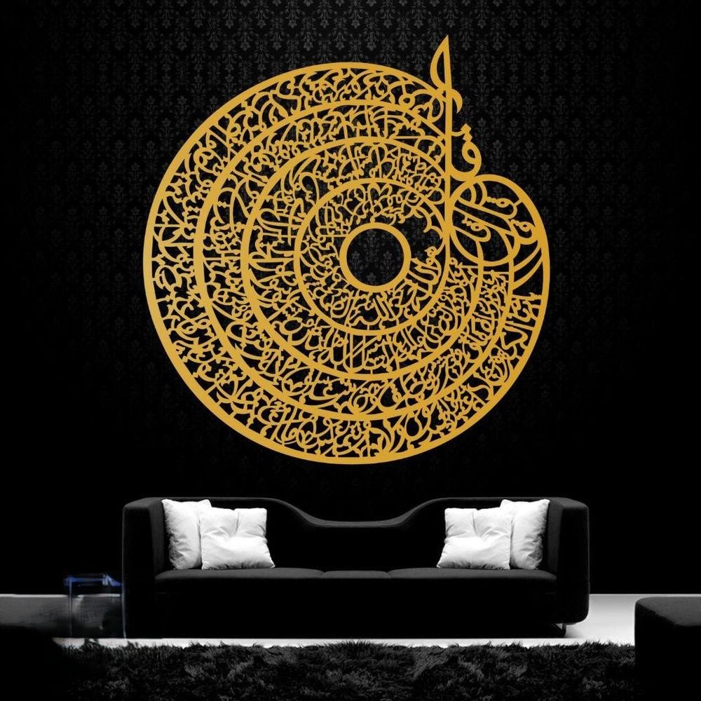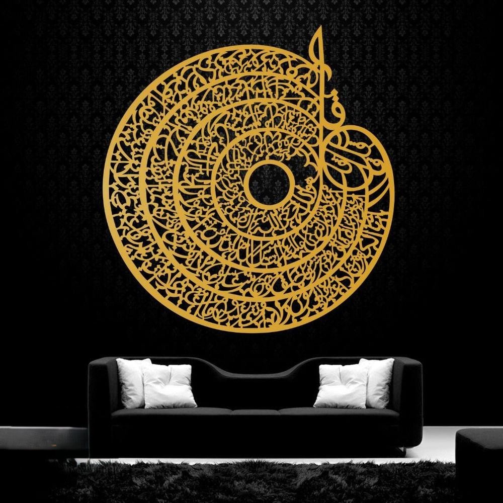 This golden 4 Qul Islamic wall hanging is designed to bring both beauty and meaning into your space. It adds a spiritual touch while also enhancing the overall look of your home or office.