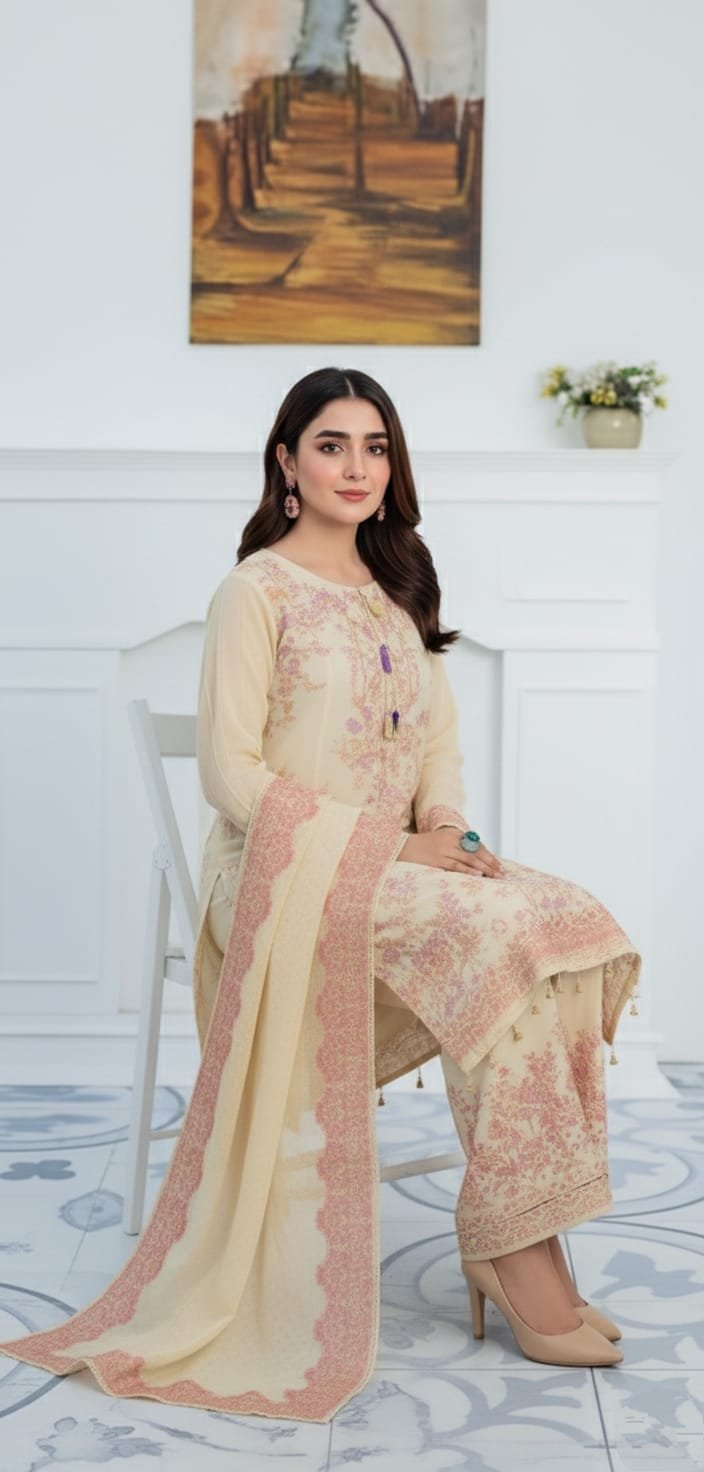 Eid aur festive occasions ke liye ek premium lawn embroidered outfit jo classy aur elegant look deta hai.